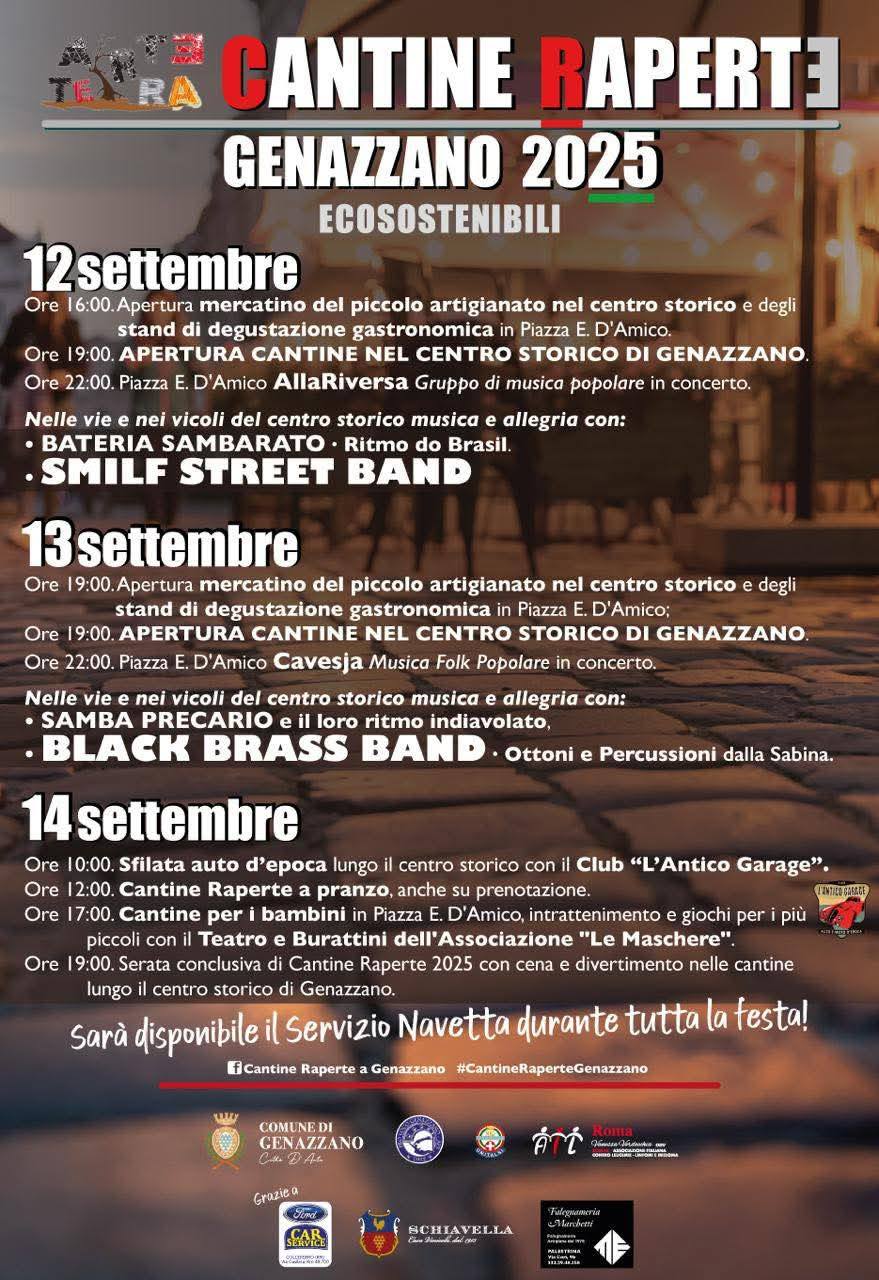 Torna a Genazzano l’attesissimo appuntamento con le Cantine Raperte, tre giorni all’insegna di tradizione, musica, gastronomia e divertimento nel cuore del centro storico.